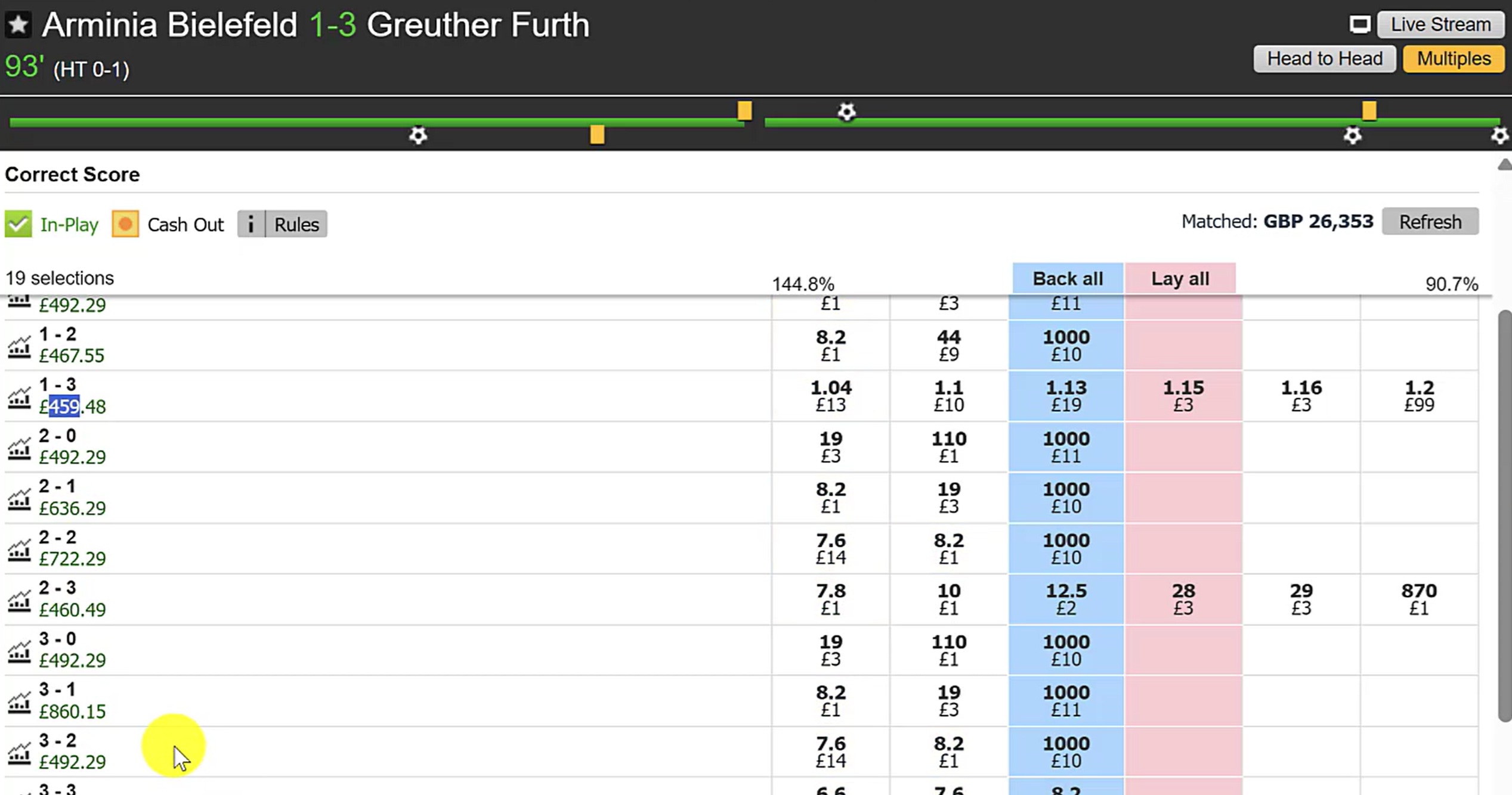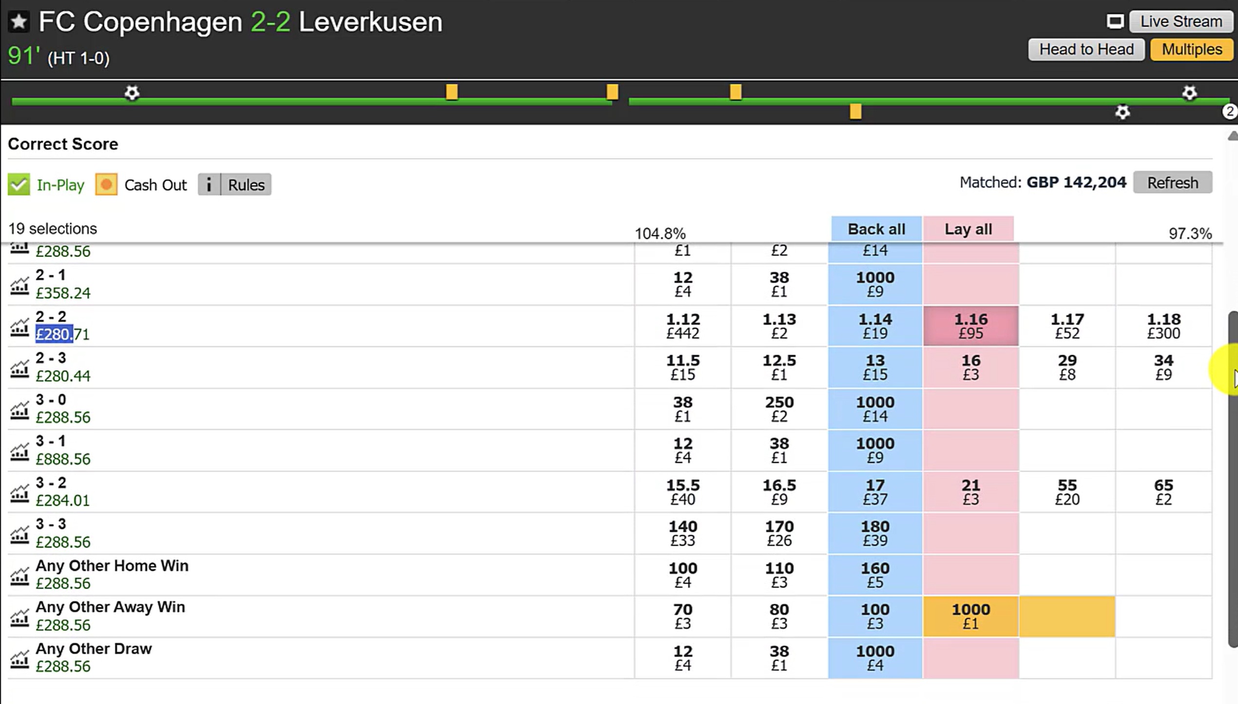 This isn't just football trading, this is position trading, financial-markets style. Entering and re-entering multiple times to compound the edge as the market shifts