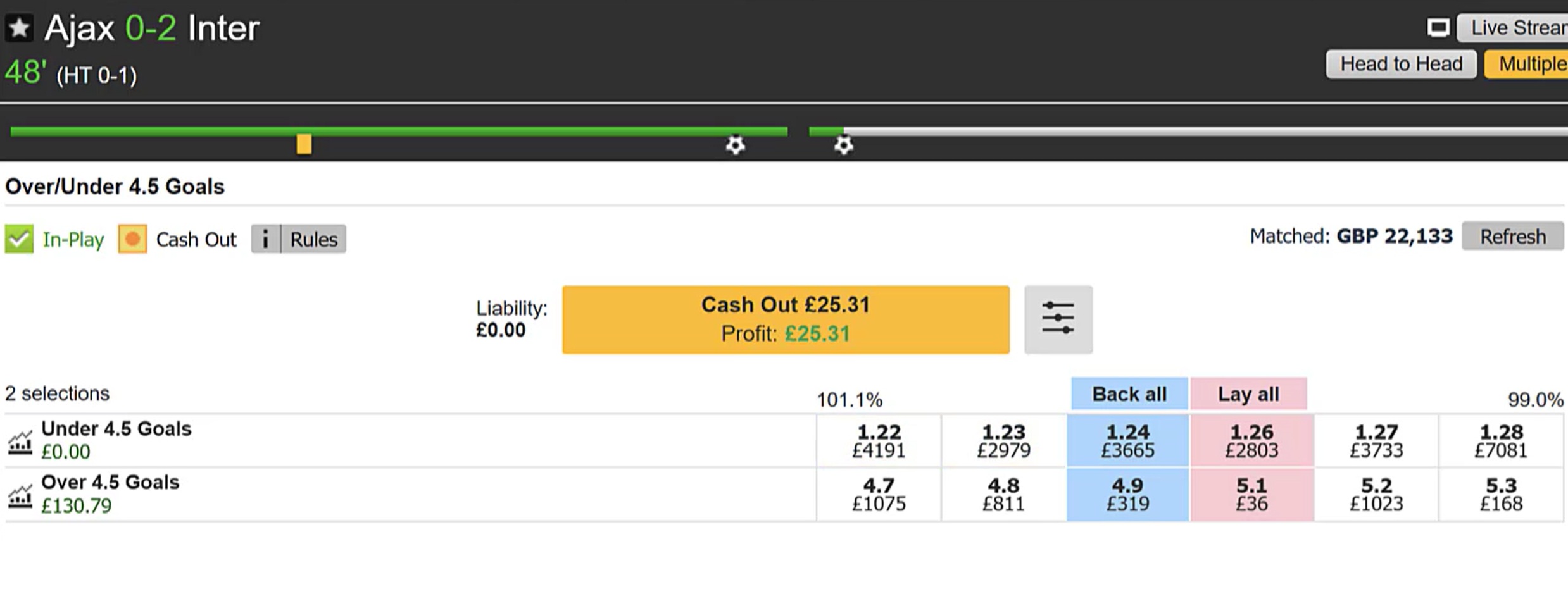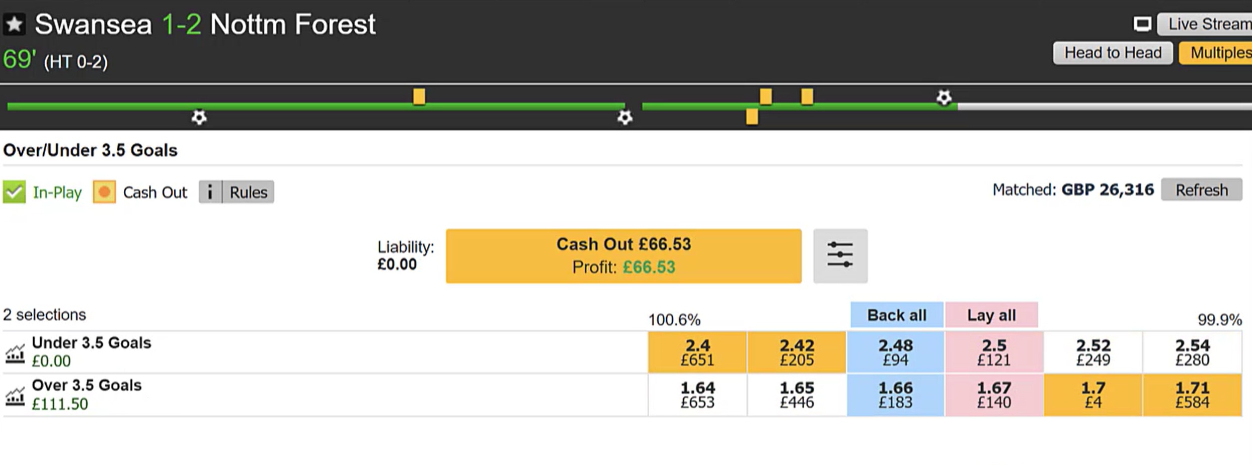 👉 By entering at this exact scenario, you’re able to ride the escalating prices in the goal markets as time ticks on. Catching the moments where odds surge but the goals are still highly likely.